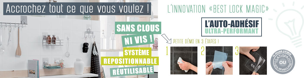 - De Bestlock Magic-haken zijn in een handomdraai te installeren: u maakt ze luchtdicht door op de zuignap te drukken en hem tegen de muur te wrijven. Vervolgens klemt u alle modulaire draagelementen vast op de ultradiscrete nap.